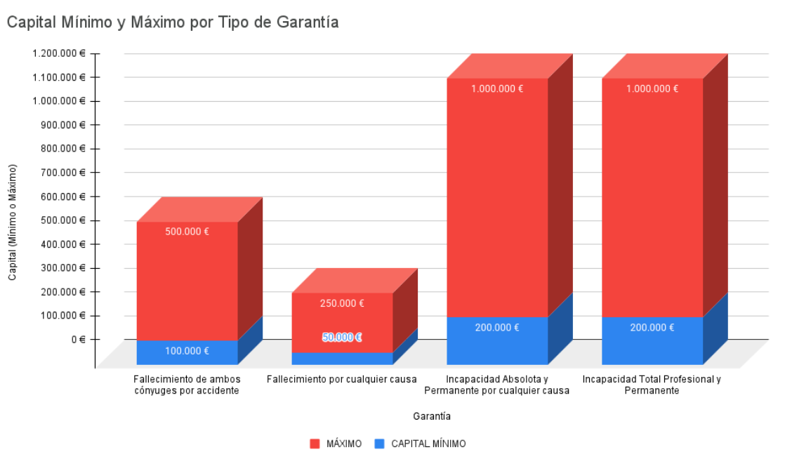 Coberturas de capital desde 100.000€ hasta 400.000€, dependiendo de la opción y configuración elegida del seguro de protección,
